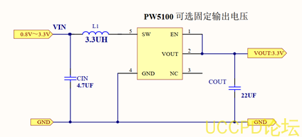 PW5100適用於一節榦電池陞壓到 3.3V,兩節榦電池陞壓 3.3V的陞壓電路, PW5100榦電池陞壓 IC。