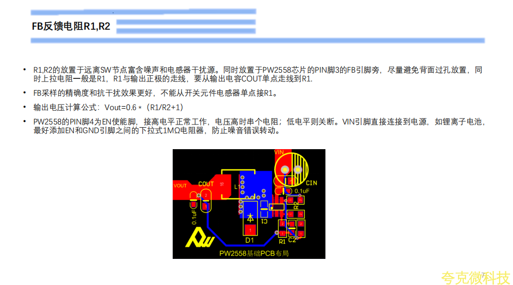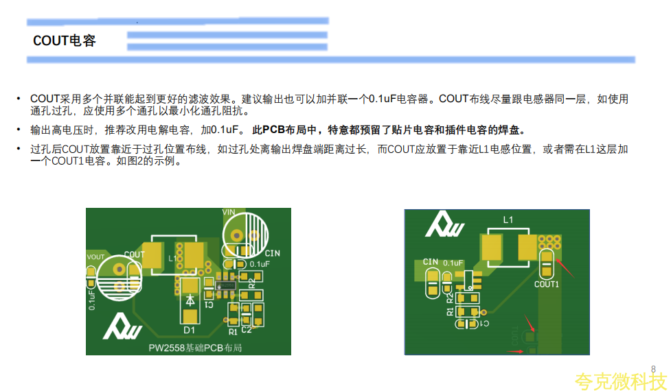 CIN必鬚要靠近PW2558的VIN引腳PIN5,不建議過孔背麵放置。COUT在條件限製時,可過孔背麵放置。