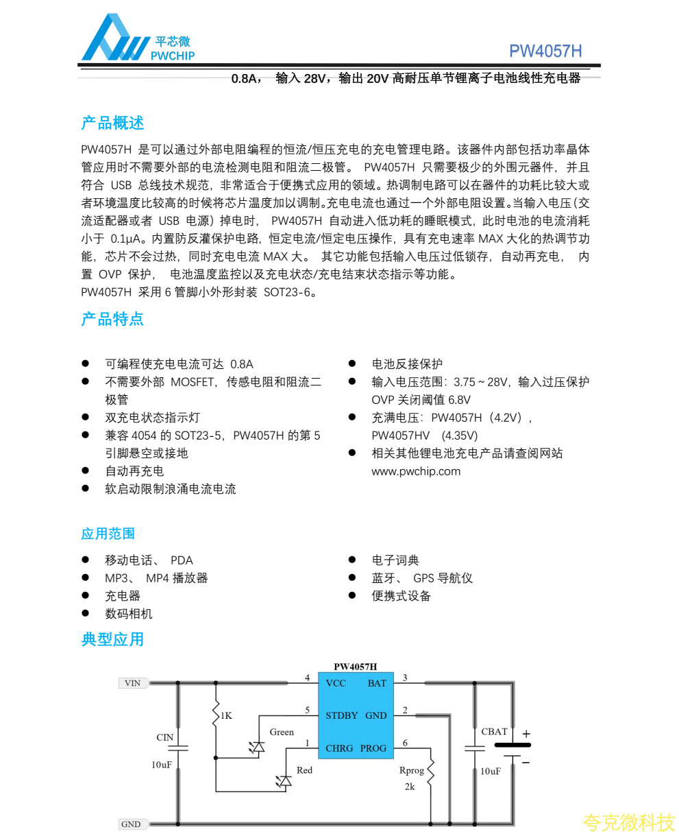 :平芯微PW4057H中文規格書