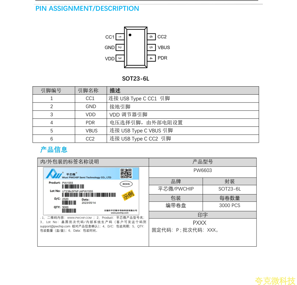 平芯微PW6603中文規格書