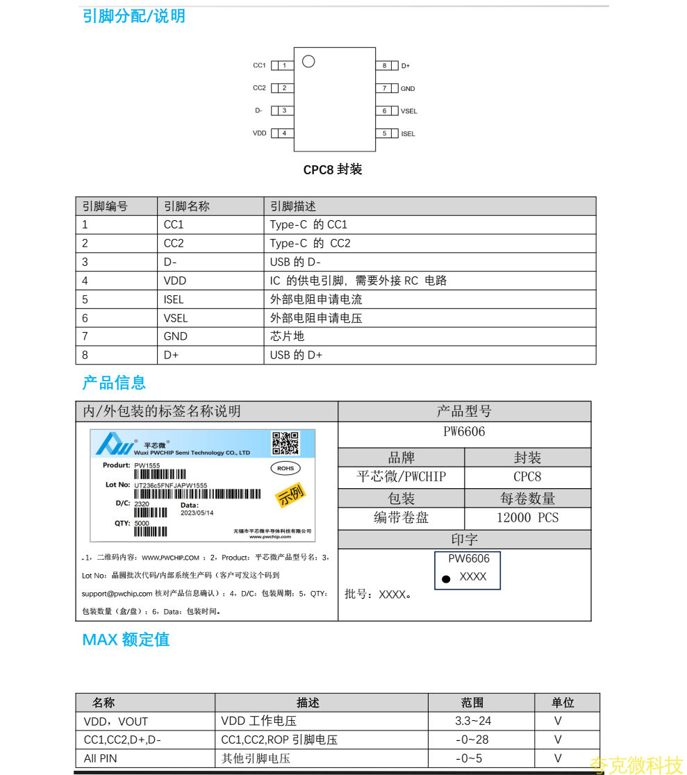 平芯微PW6606中文規格書