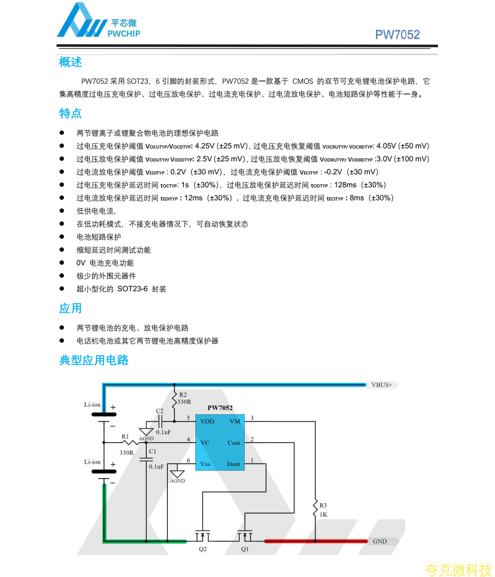 :平芯微PW7052中文規格書