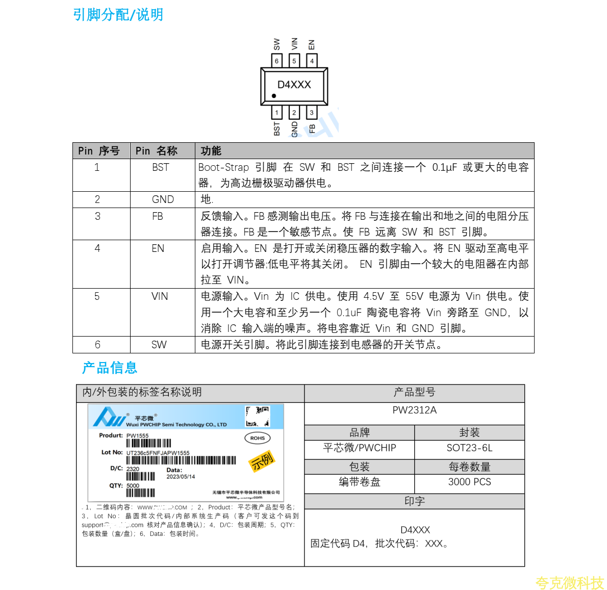 平芯微PW2312A中文規格書