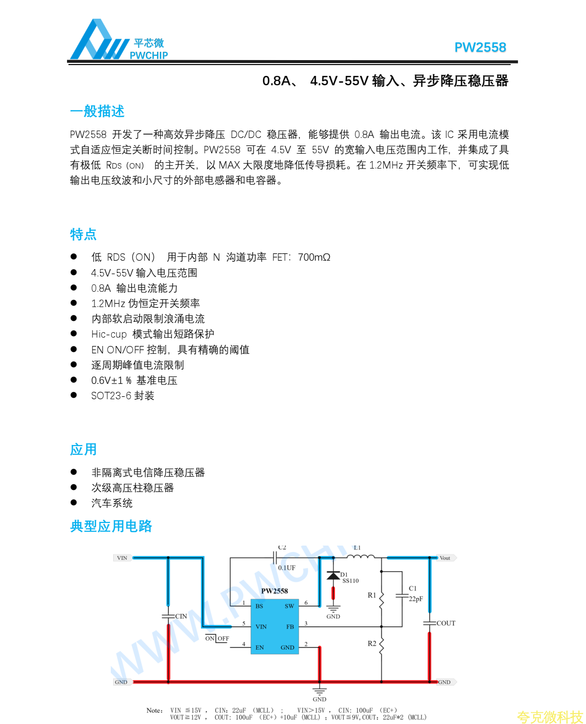 平芯微PW2558中文規格書