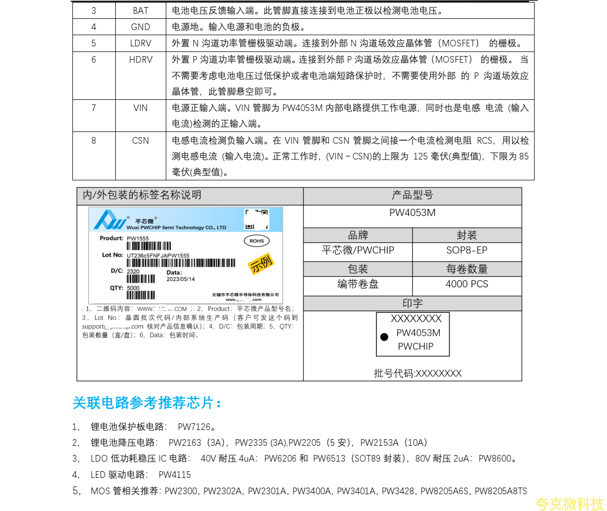 :平芯微PW4053M中文規格書
