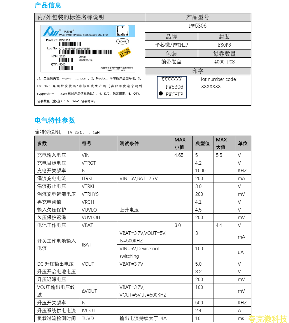 平芯微PW5306中文規格書
