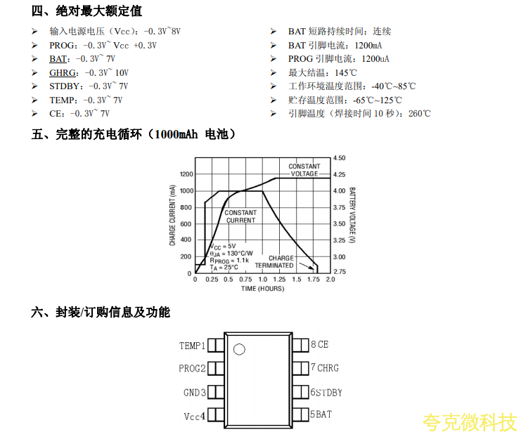 當接通輸入電源後,FS4067進入充電狀態,控製外置N溝道MOSFET導通,電感電流上陞,當上陞到外部電流檢測電陽設置的上限時,外置N溝道MOSFET截止,電感電流下降,電感中的能量轉移到電池中。當電感電流下降到外部電流檢測電阻設置的下限時,外置N溝道MOSFET再次導通,如此循環。當BAT管騰電壓第一次達到內部設置的8.4Y(典型值)時,FS4067進入恆壓充電模式,以較小電由流對電池充電。隻有當BAT管腳電壓第二次達到8.4V時,充電過程纔結束,外置N溝道MOSFET保持截止狀態。當BAT管腳電壓下降到再充電閩值時,FS4067再次進入充電狀態。FS4067最高工作頻率可達1MHz。當電池電壓低於輸入電壓或電池短路時,FS4067在外置N溝道MOSFET和P溝道MOSFET的共衕作用下,用較小電流繼續對電池充電,對電池起到保護作用。其他功能包括芯片使能輸入,狀態指示輸齣端等。FS4067採用8管腳的SOP8封裝。